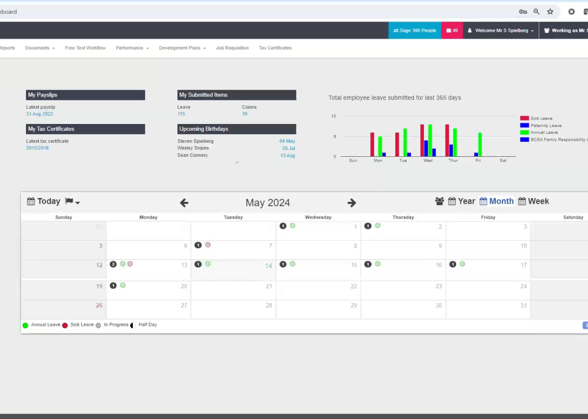 Employees can apply for leave, update personal details, submit claims, and access payslips or IRP5s anytime, from any device.